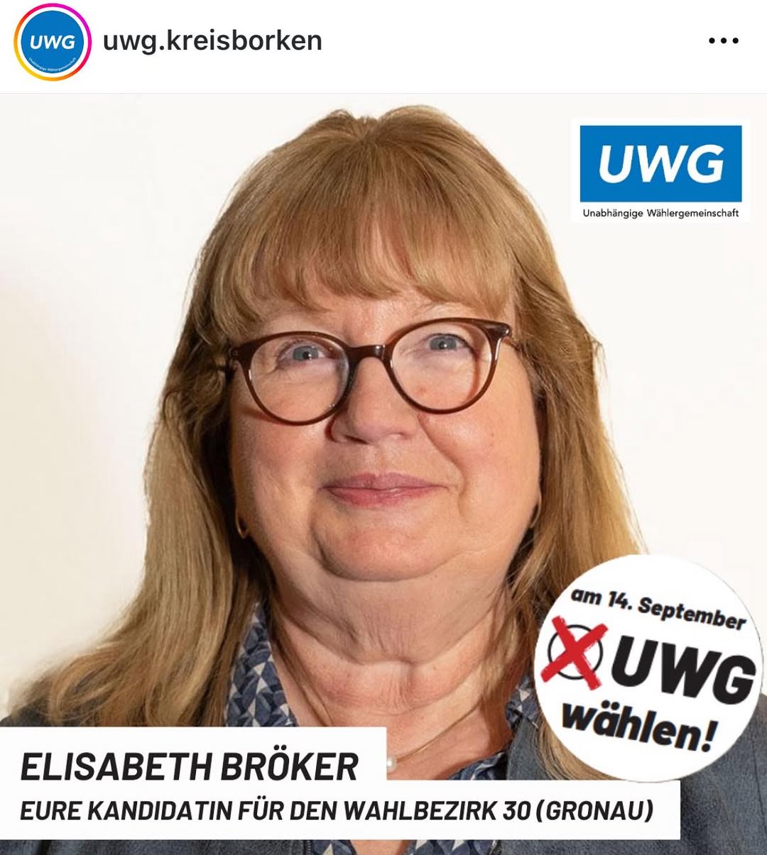 Am 14. September 2025, oder vorher per Briefwahl, deine Stimmen für die UWG